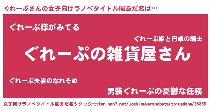 | 男性向けラノベタイトル風あだ名 | 『やはりぐれーぷの青春ラブコメはまちがっている 』 |