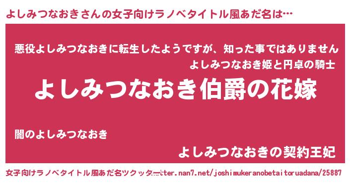 | 男性向けラノベタイトル風あだ名 | 『やはりよしみつなおきの青春ラブコメはまちがっている 』 |