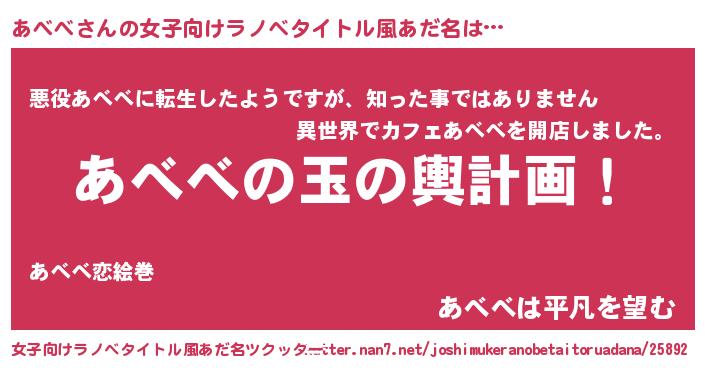 | 男性向けラノベタイトル風あだ名 | 『転生したらあべべだった件』 |