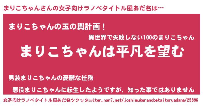 | 男性向けラノベタイトル風あだ名 | 『ダンジョンにまりこちゃんを求めるのは間違っているだろうか』 |