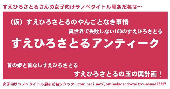 | 男性向けラノベタイトル風あだ名 | 『魔法科高校のすえひろさとる』 |