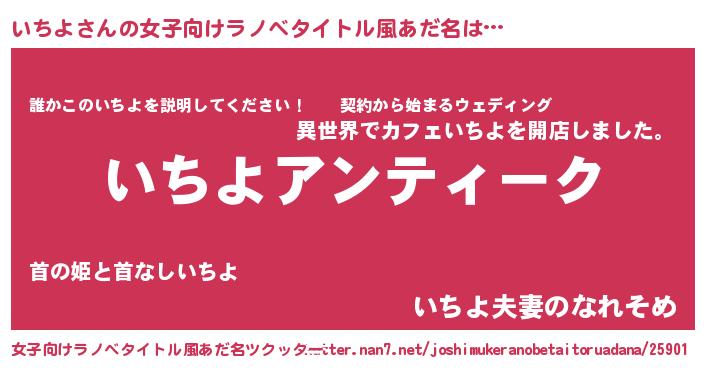 | 意味不明あだ名 | 『自称いちよ』『ペロリンいちよ』 |