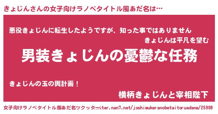 | 男性向けラノベタイトル風あだ名 | 『うちのきょじんが世界を掌握している!』 |