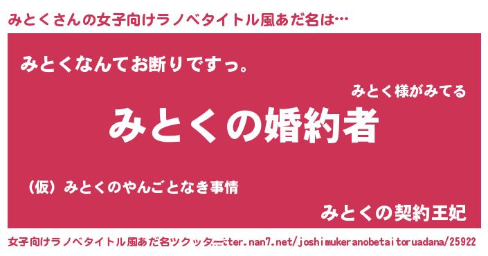 | 意味不明あだ名 | 『みとくフォーエバー』『自称みとく』 |