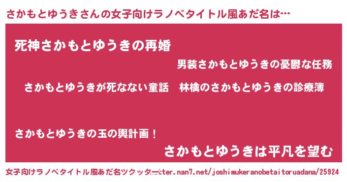 | 男性向けラノベタイトル風あだ名 | 『魔弾の王とさかもとゆうき』 |