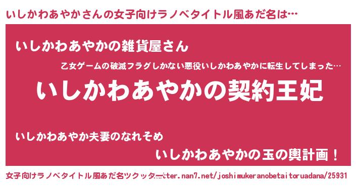 | 胡散臭い通販商品みたいなあだ名 | 『来世でも幸せになれる健康食品…その名も「いしかわあやか」』 |