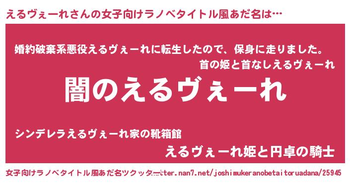 | 意味不明あだ名 | 『自称えるヴぇーれ』 |