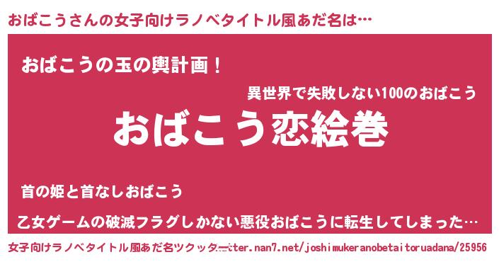 | 男性向けラノベタイトル風あだ名 | 『ノーゲーム・ノーオバコウ』 |