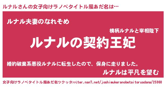 | 胡散臭い通販商品みたいなあだ名 | 『来世でも幸せになれる健康食品…その名も「ルナル」』 |