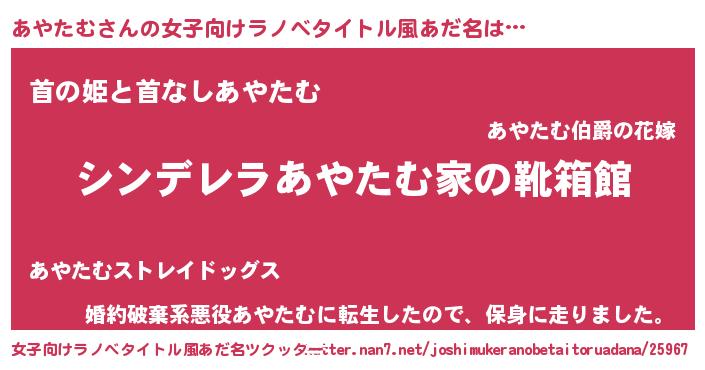 | 男性向けラノベタイトル風あだ名 | 『緋弾のアヤタム』 |