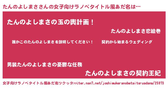 | ヘコむあだ名 | 『たんもー』『たんのよしまさ(笑)』 |