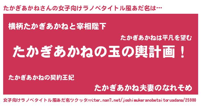| ヘコむあだ名 | 『たかを』『たかぎあかね(笑)』 |