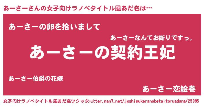 | 意味不明あだ名 | 『永久保存あーさー』『自称あーさー』 |