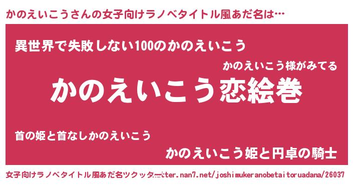 | 男性向けラノベタイトル風あだ名 | 『ノーゲーム・ノーカノエイコウ』 |