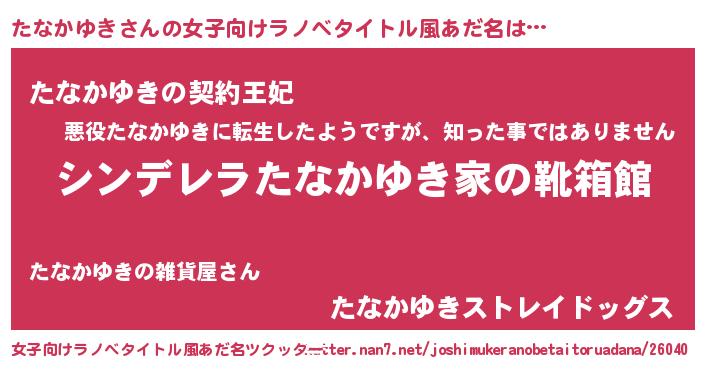| 男性向けラノベタイトル風あだ名 | 『緋弾のタナカユキ』 |