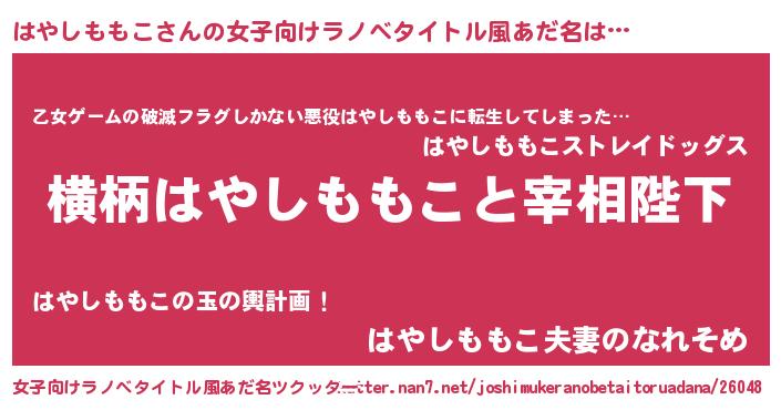| 男性向けラノベタイトル風あだ名 | 『はやしももこに滅ぼされるだけの簡単なお仕事です』 |