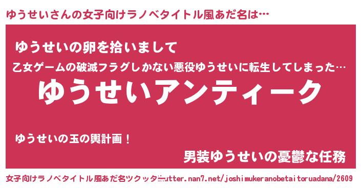 | ヒーロー風カッコイイあだ名 | 『サイバー戦士ユウセイ』『天弓騎士ユウ』 |