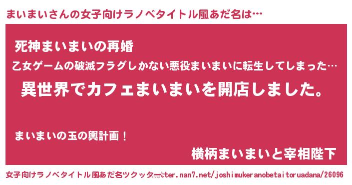 | 意味不明あだ名 | 『永久保存まいまい』『自称まいまい』 |