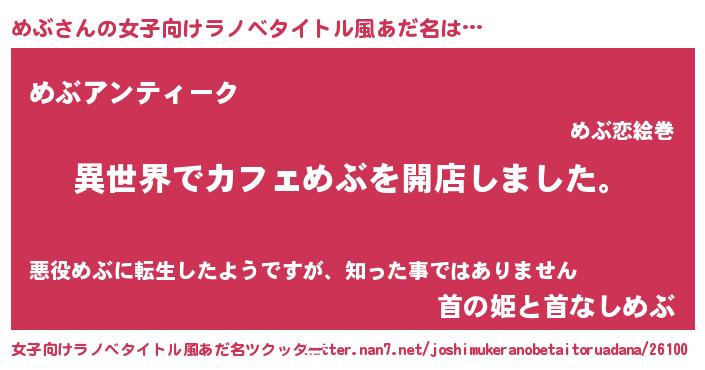 | 意味不明あだ名 | 『永久保存めぶ』『自称めぶ』 |