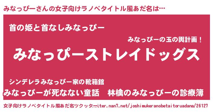 | 男性向けラノベタイトル風あだ名 | 『Re:みなっぴーから始める異世界生活』 |