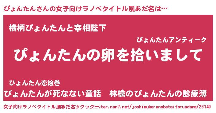 | 胡散臭い通販商品みたいなあだ名 | 『伝統あるサプリメント…その名も「ぴょんたん」』 |