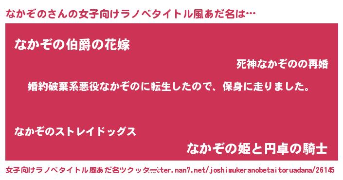 | 男性向けラノベタイトル風あだ名 | 『ナカゾノスレイヤー』 |