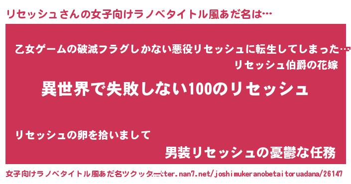 | ファンタジー風あだ名 | 『リセディッシュ』『ヴァルリセーナ』 |