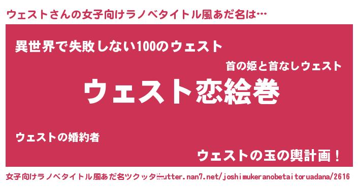 | 男性向けラノベタイトル風あだ名 | 『ノーゲーム・ノーウェスト』 |