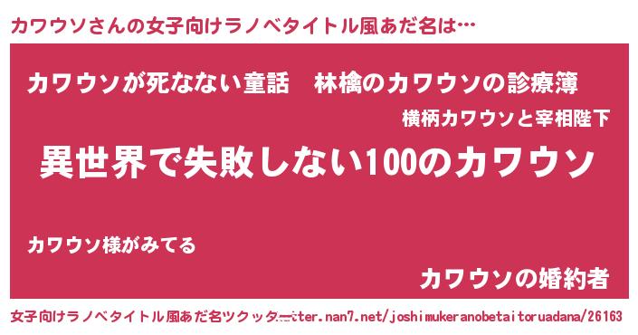 | 男性向けラノベタイトル風あだ名 | 『カワウソという概念が存在しない退屈な世界 』 |