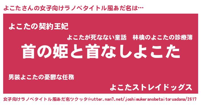 | 意味不明あだ名 | 『永久保存よこた』『自称よこた』 |