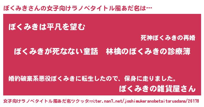 | 意味不明あだ名 | 『住所不定無職ぼくみき(98歳)』 |