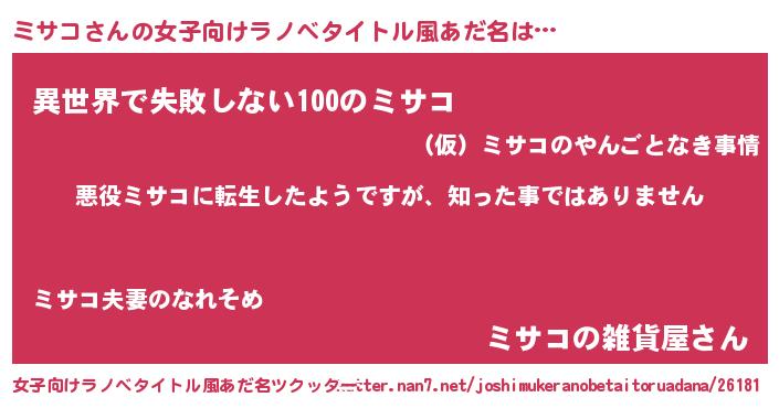 | 意味不明あだ名 | 『住所不定無職ミサコ(9歳)』 |