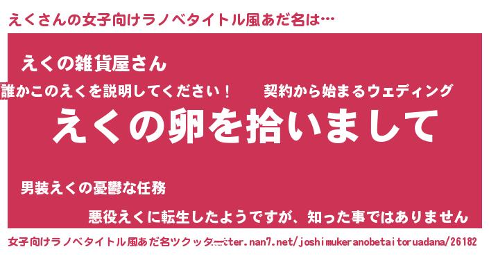 | 男性向けラノベタイトル風あだ名 | 『えくの嫁は女の子じゃないと思った?』 |
