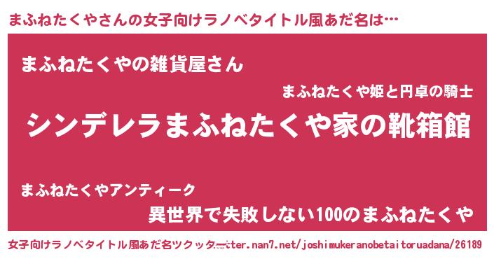 | 胡散臭い通販商品みたいなあだ名 | 『幸せが訪れる高級そうな絵画…その名も「まふねたくや」』 |