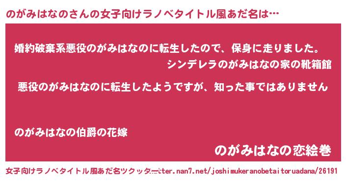 | ヒーロー風カッコイイあだ名 | 『仮面ノガダー』『愛の使者のがみはなの』 |