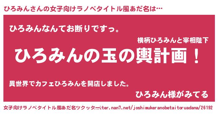 | 男性向けラノベタイトル風あだ名 | 『転生したらひろみんだった件』 |
