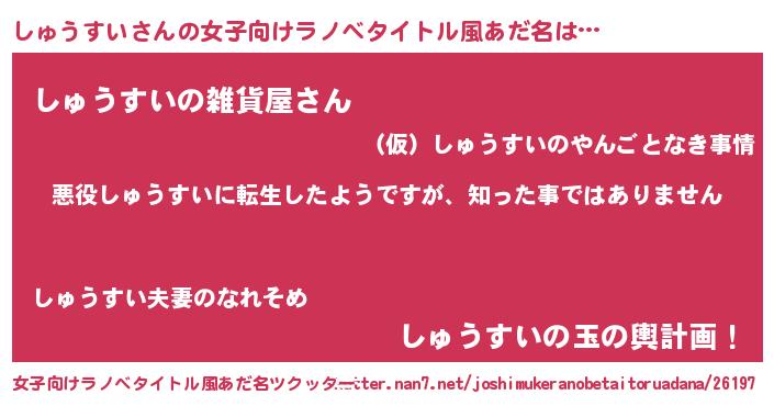 | 胡散臭い通販商品みたいなあだ名 | 『あなたにだけ特別に提供する100年もののヴィンテージワイン…その名も「しゅうすい」』 |