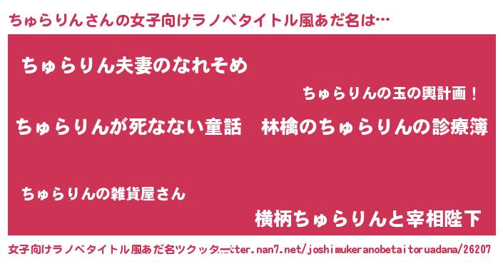 | 男性向けラノベタイトル風あだ名 | 『魔弾の王とちゅらりん』 |