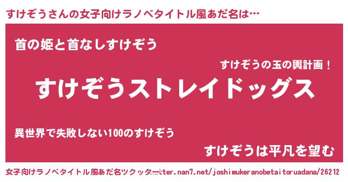 | 男性向けラノベタイトル風あだ名 | 『Re:すけぞうから始める異世界生活』 |