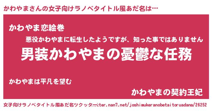 | ヒーロー風カッコイイあだ名 | 『慈愛の使者かわやま』『ネオカワヤマ』 |