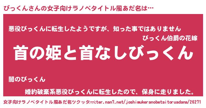 | 男性向けラノベタイトル風あだ名 | 『はたらくびっくんさま!』 |