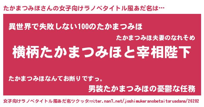 | 男性向けラノベタイトル風あだ名 | 『たかまつみほに滅ぼされるだけの簡単なお仕事です』 |