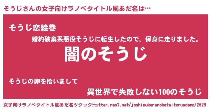 | ヒーロー風カッコイイあだ名 | 『最強戦士ソウジ』『正義の使者そうじ』 |