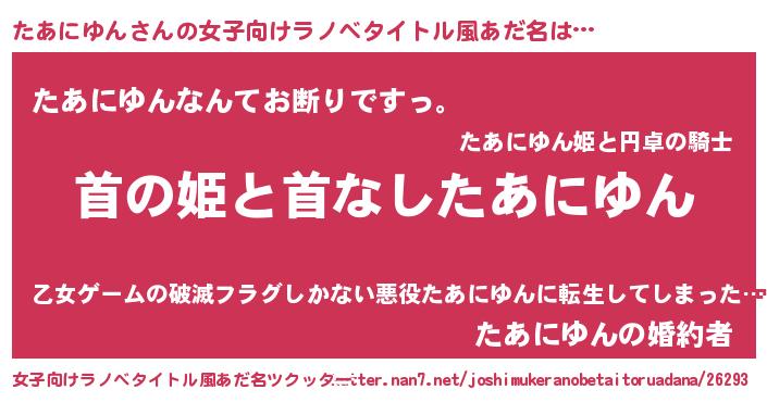 | 男性向けラノベタイトル風あだ名 | 『はたらくたあにゆんさま!』 |