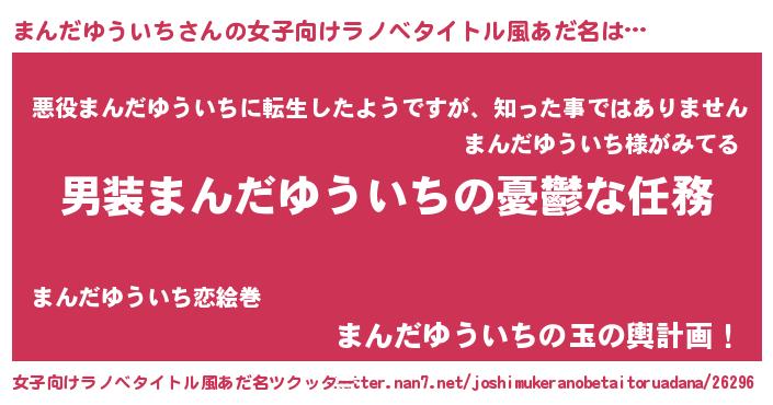男性向けラノベタイトル風あだ名 | 『うちのまんだゆういちが世界を掌握している!』 |