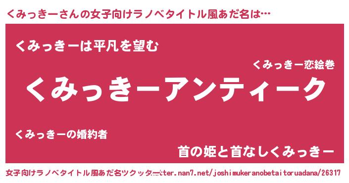 | 胡散臭い通販商品みたいなあだ名 | 『テレビで話題のアガリクス…その名も「くみっきー」』 |