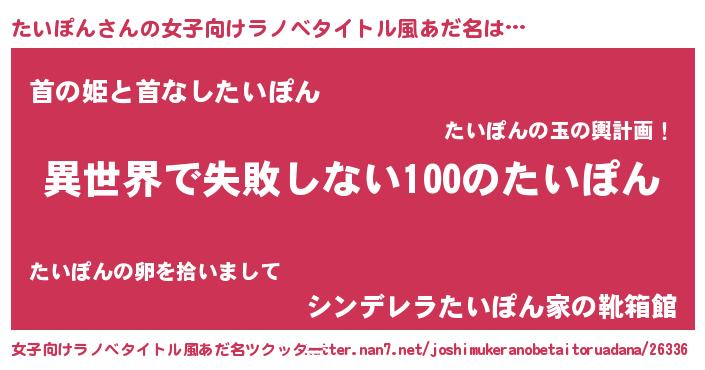 | 男性向けラノベタイトル風あだ名 | 『たいぽんという概念が存在しない退屈な世界 』 |