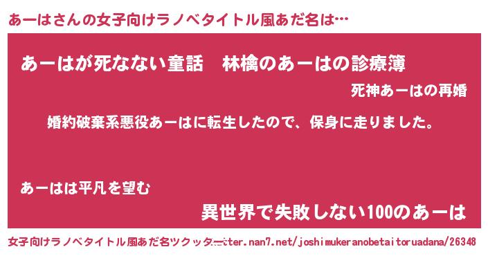 | 伝説のあだ名 | 『聞きしに勝る勇者あーは』 |