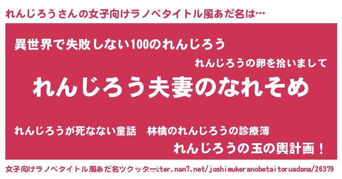| 男性向けラノベタイトル風あだ名 | 『おまえをオタクにしてやるから、俺をれんじろうにしてくれ! 』 |