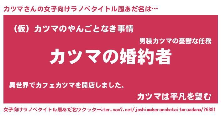 | 胡散臭い通販商品みたいなあだ名 | 『運命の人と巡り会える高級そうな絵画…その名も「カツマ」』 |